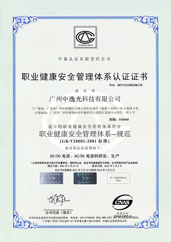 職業健康安全管理體系認證證書